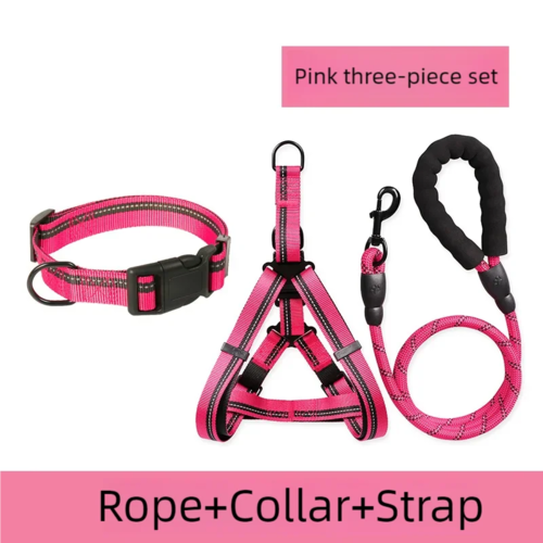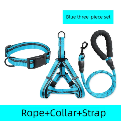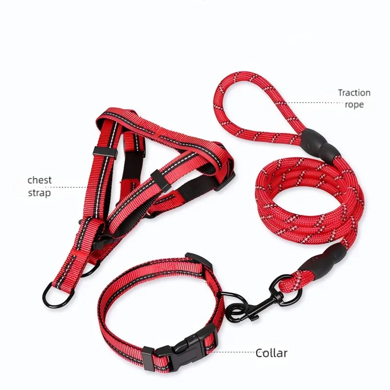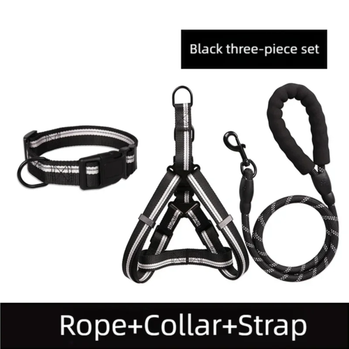 Introducing our comprehensive Dog Chest Back + Collar + Leash Set, designed to provide both comfort and safety for your beloved pet. This all-in-one package features a high-quality leash that boasts several notable advantages: