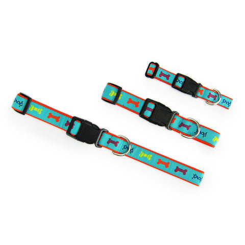 Durable as they are beautiful, our Party Bones adjustable collars are woven from lightweight nylon threads. As each colorful design comes off our looms it is hand sewn to a flexible web backing making each collar comfortable for furry family members. High quality hardware completes the look for our machine washable and fade resistant collars.