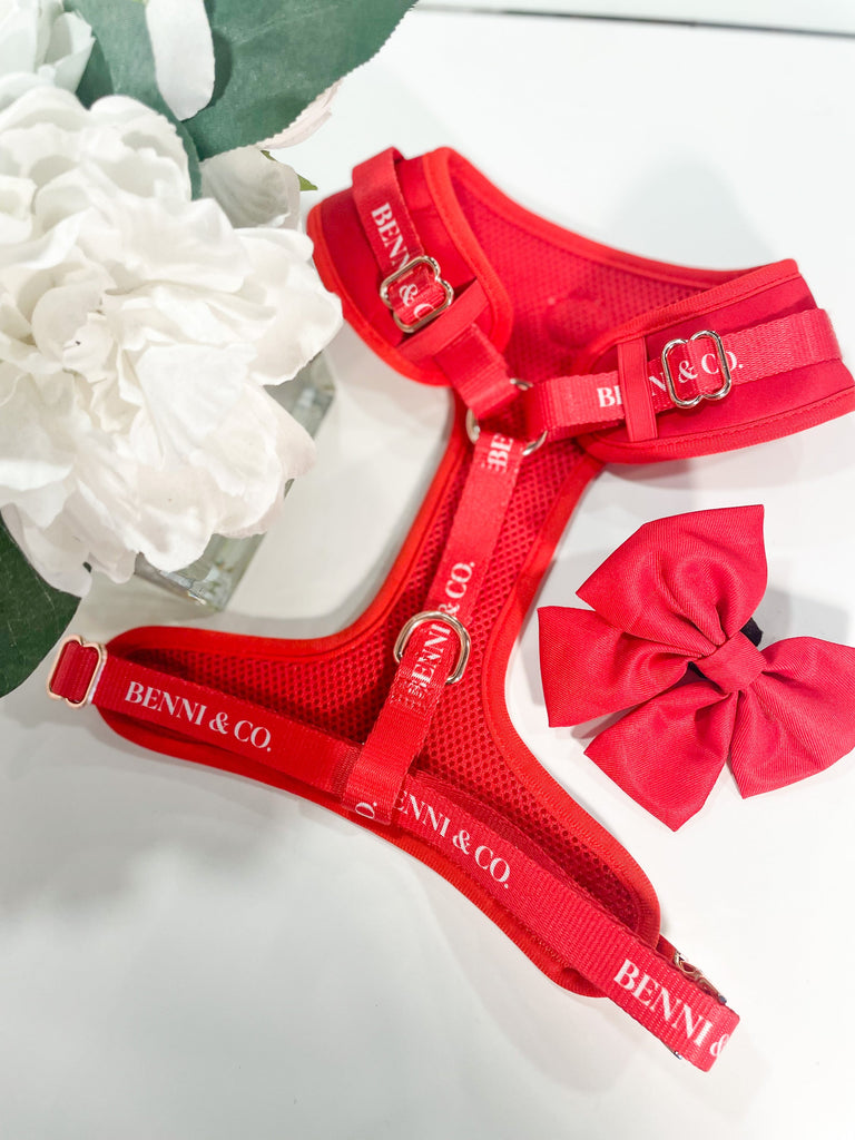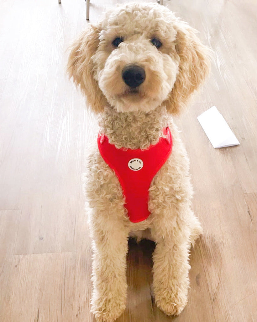 The new Scarlet Love harness, because good dog walkies deserve a good outfit.