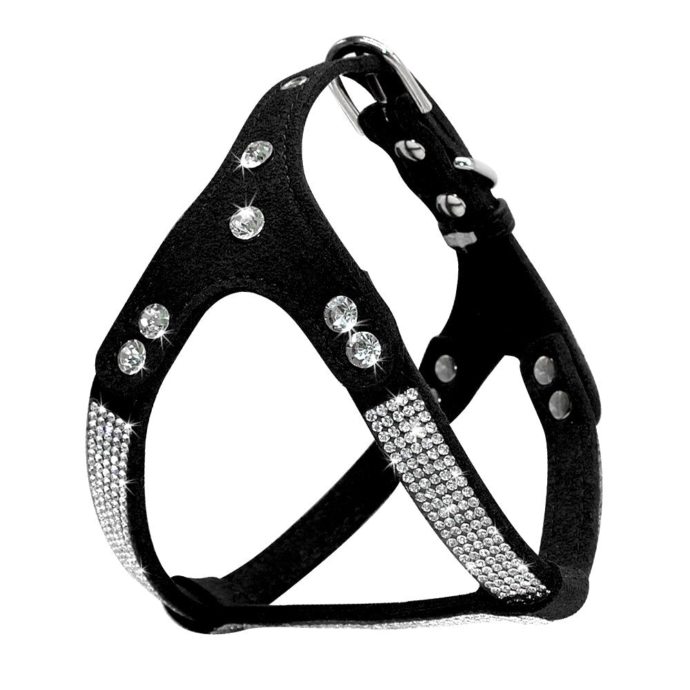 Soft Suede Dog Harness Bling Rhinestone