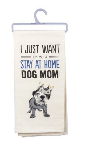 Dish towel reads: I JUST WANT TO BE A STAY AT HOME DOG MOM