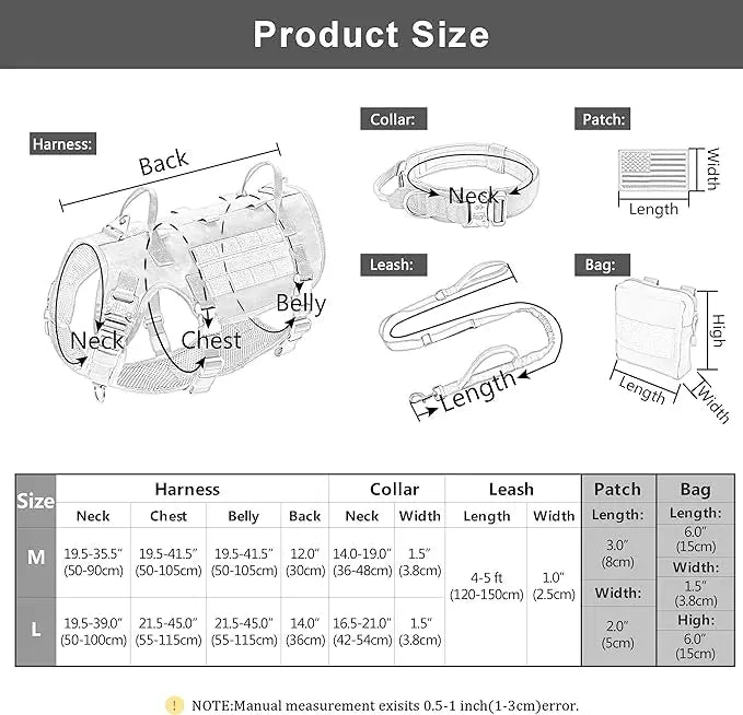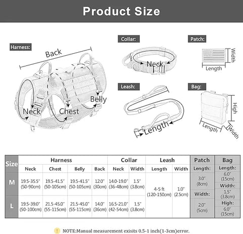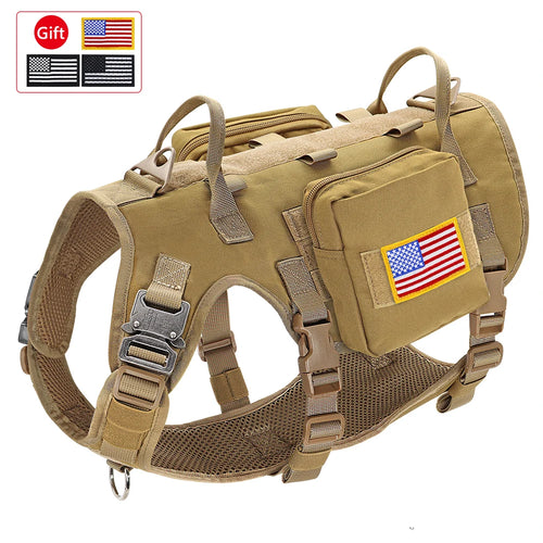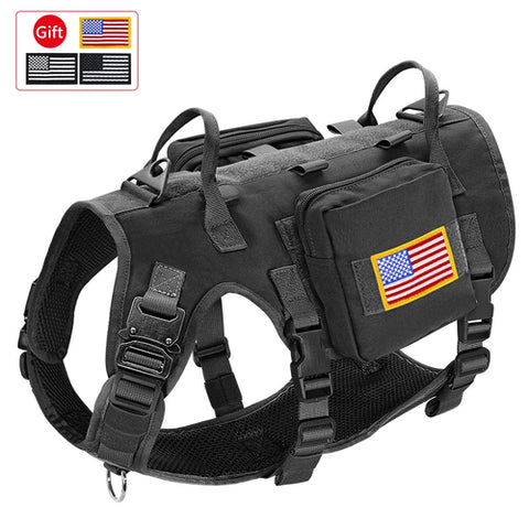 Tactical Military Dog Harness Collar Leash Set Durable Big Dog Training Harness Vest MOLLE For Large Dogs With Pouches Flag