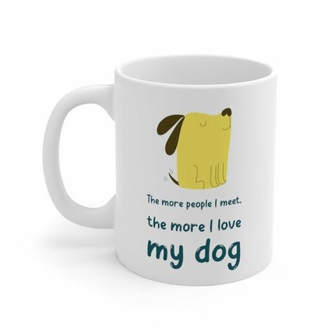 The More People I Meet, The More I Love My Dog Mug. Perfect for coffee, tea and hot chocolate, this classic shape white, durable ceramic mug.